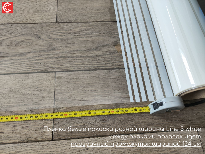 - Между блоками с белыми полосками есть прозрачный промежуток шириной = 124 см.